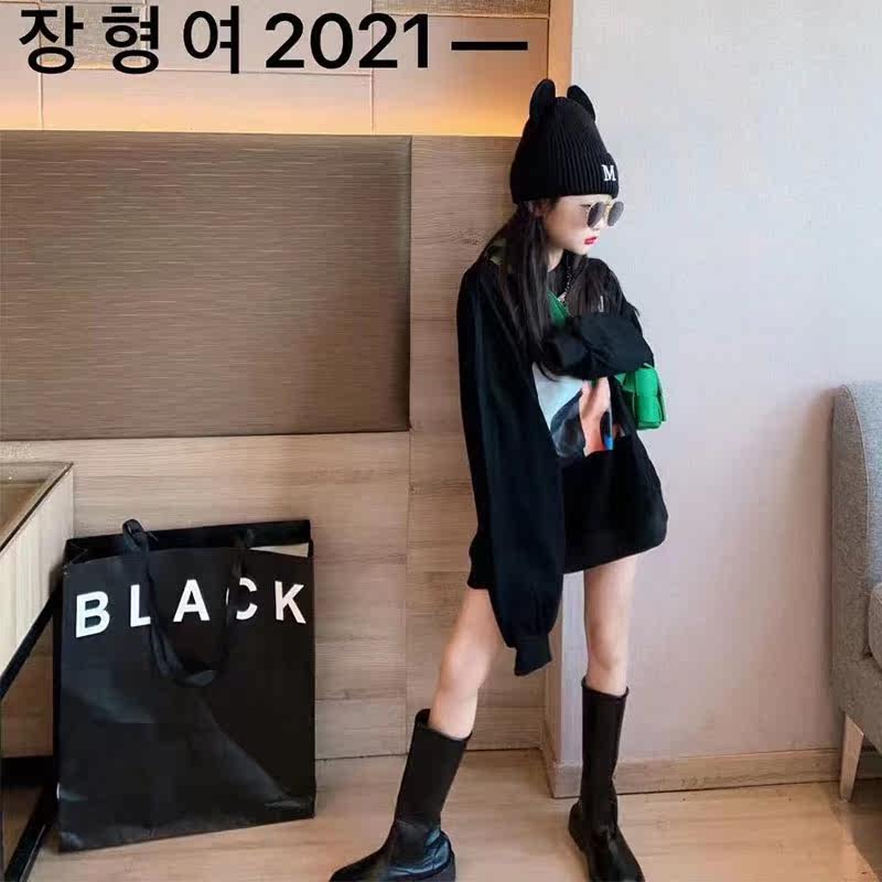 Girls' mid-length sweater 2021 new middle-aged children's Korean version of the fashionable spring and autumn wear thin section Western style long-sleeved top trendy