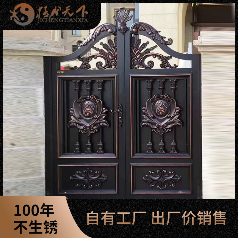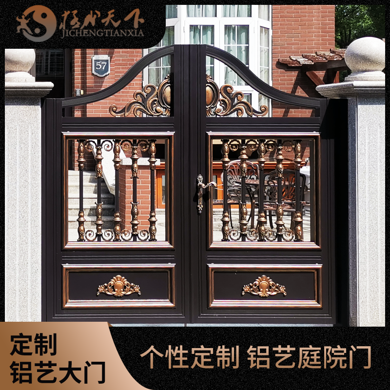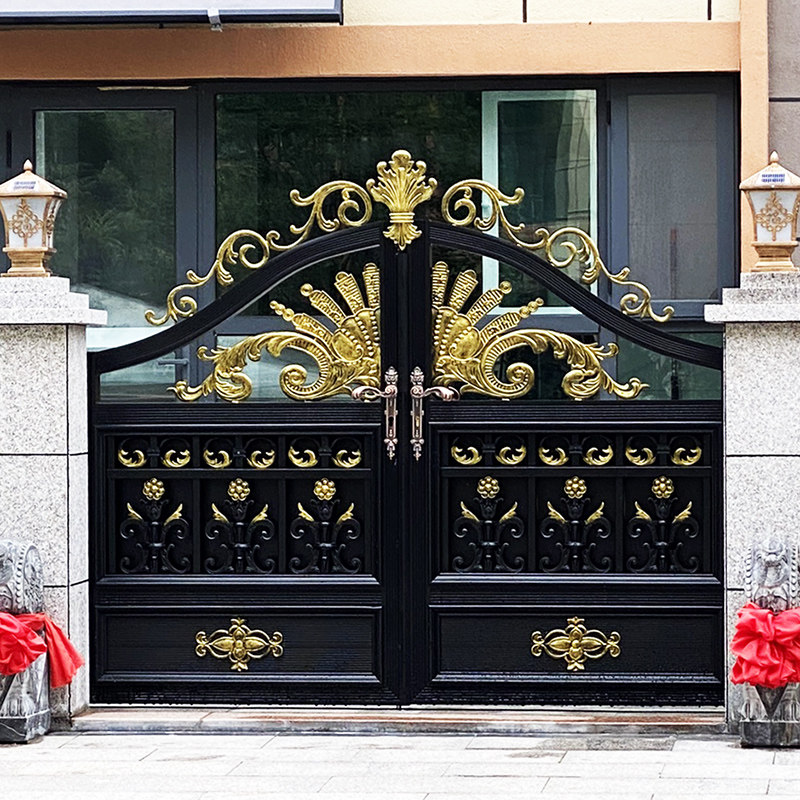 New Chinese modern minimalist art countryside primary-secondary push-pull folding and stacking baking varnish to make aluminum alloy villa courtyard gate