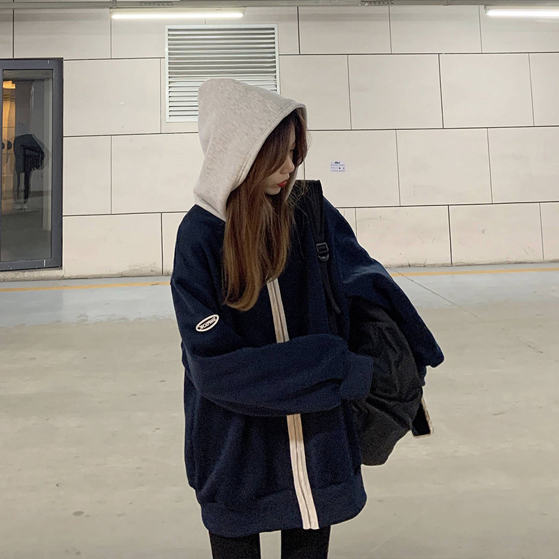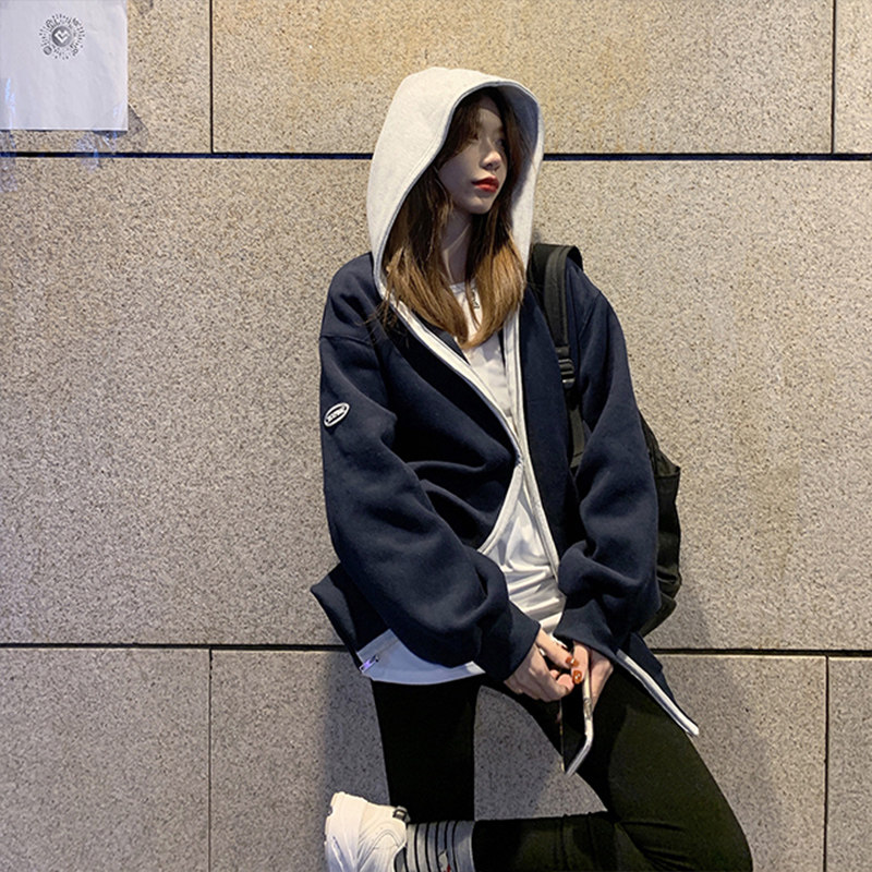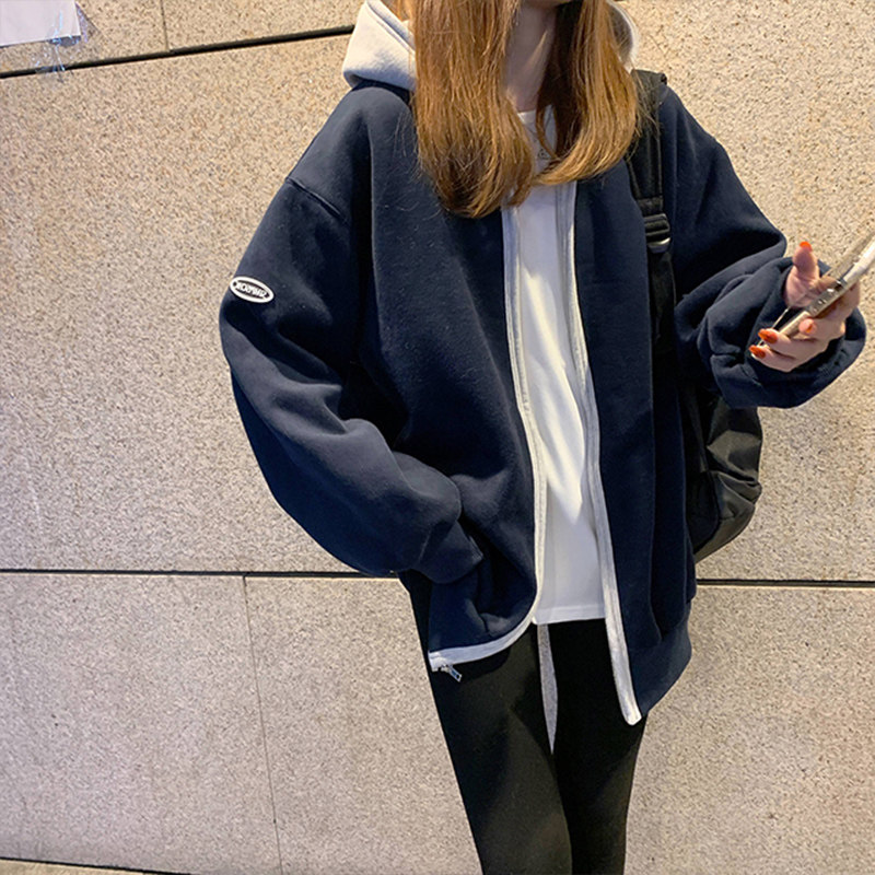 Fleece hooded sweatshirt women's 2022 autumn and winter new retro design loose baseball uniform age-reducing tooling jacket trend