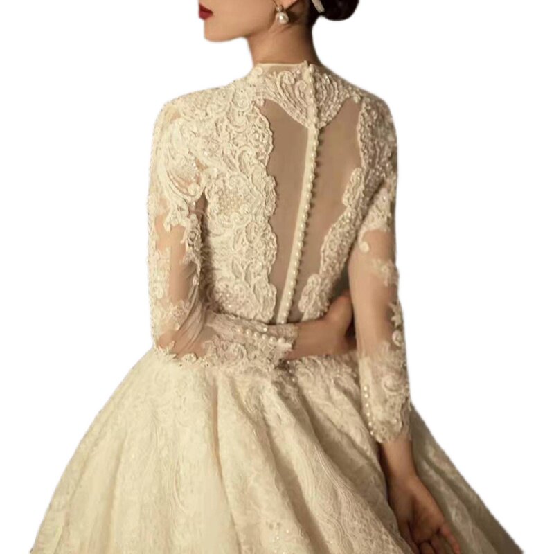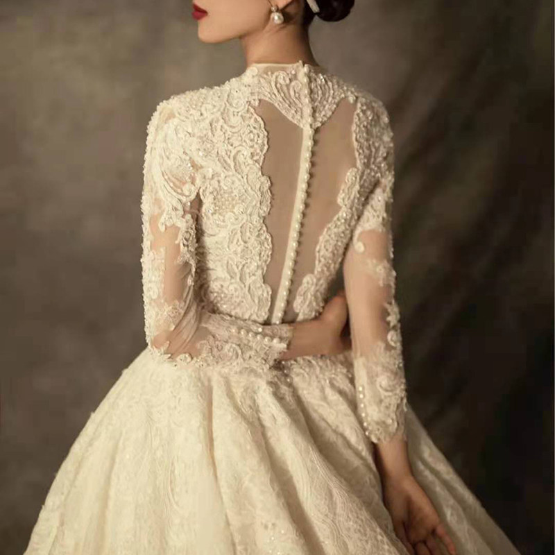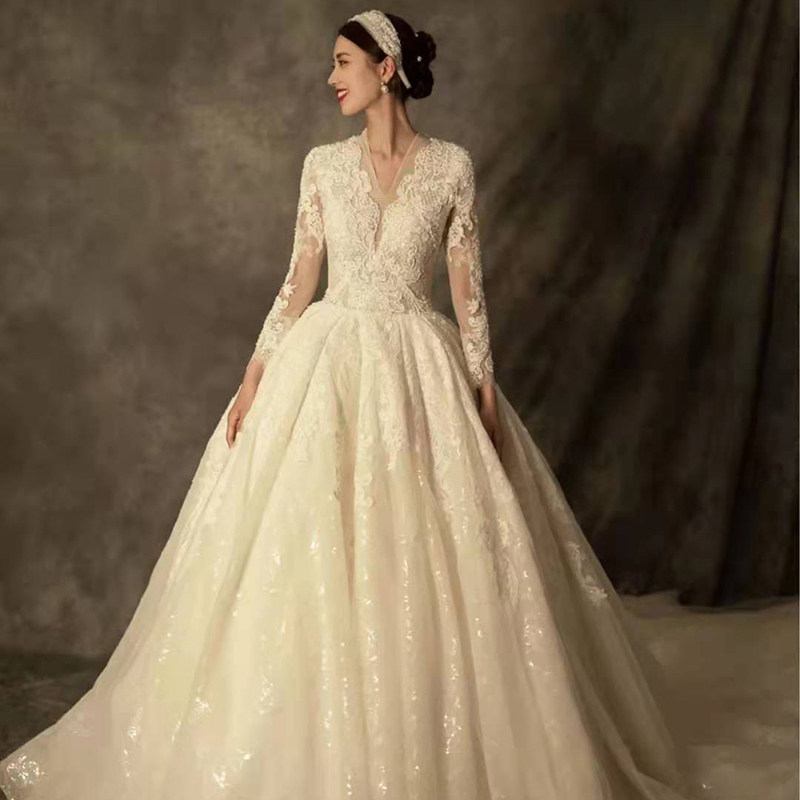 French Wedding Dress 2022 New Bridal High-end Heavy Industry Luxury Big TrailIng Court Style Main Yarn Long Sleeve Premium Texture