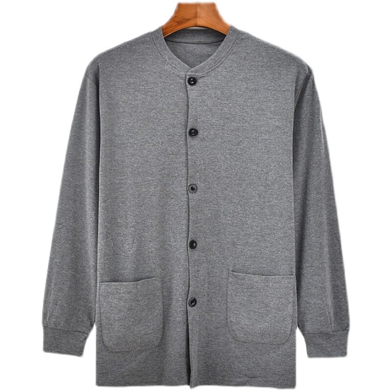 Men's pure cotton open and autumn clothes in old age plus hypertrophy size loose cotton sweater shirt sweatshirt underwear inside