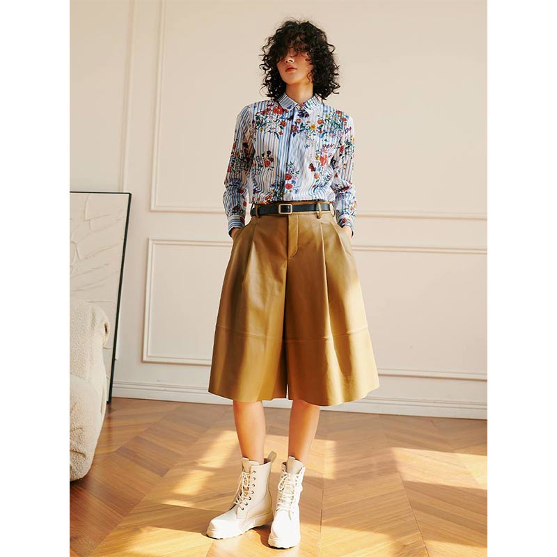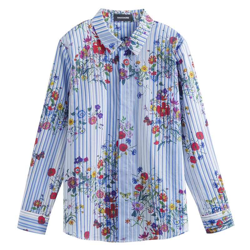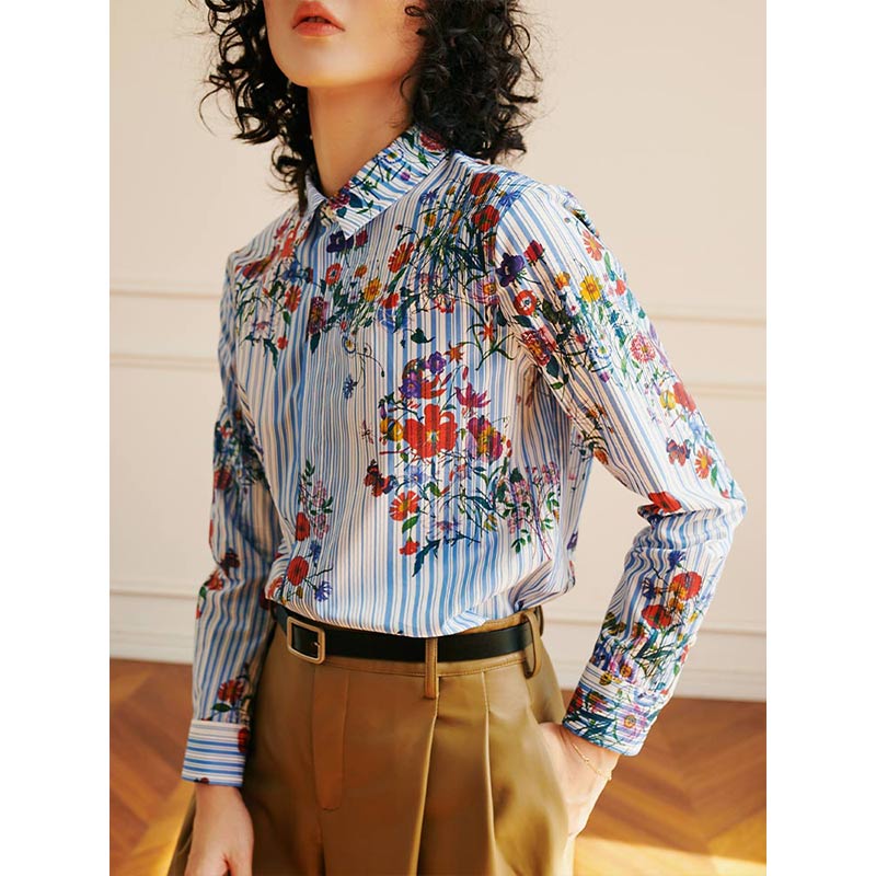 Bugs Italian imported cotton retro flower print striped shirt loose top 2022 new