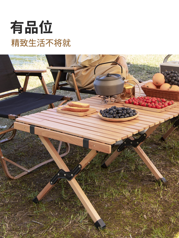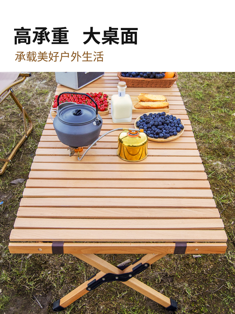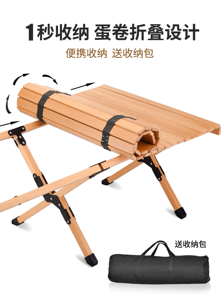 Outdoor table portable folding egg roll table picnic camping equipment camping beech solid wood self-driving tour car table