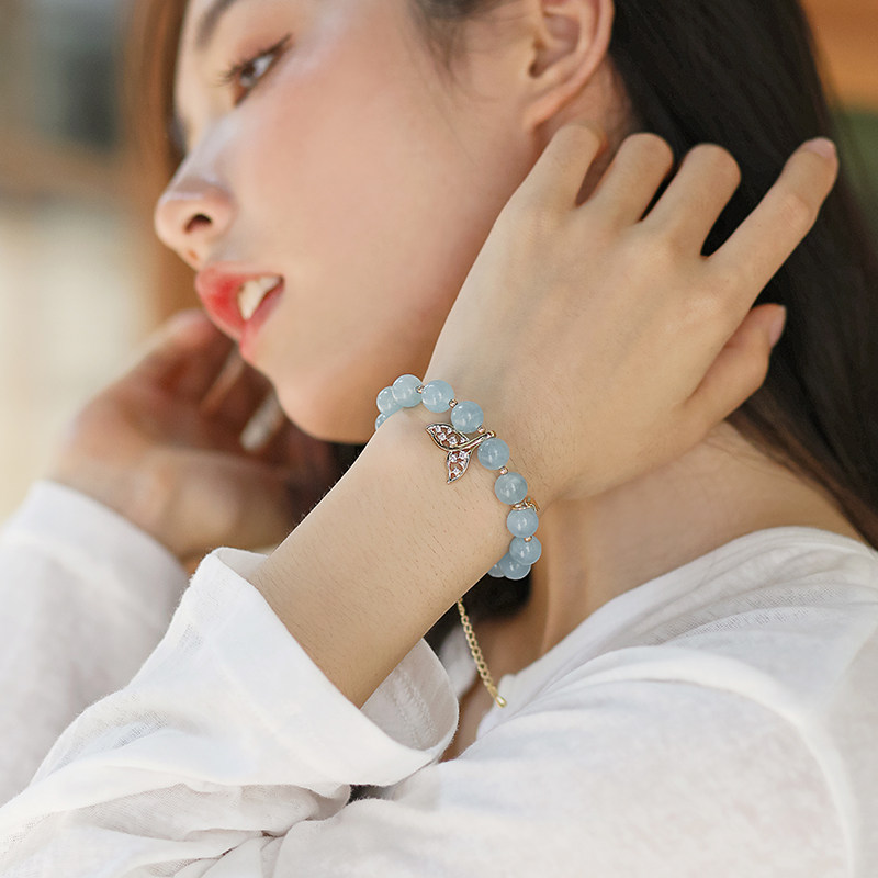Sea Blue Treasure Crystal Handmade Female Summer Brief original natural blue beads Beads Girls Handstring Fish Tail Ornaments