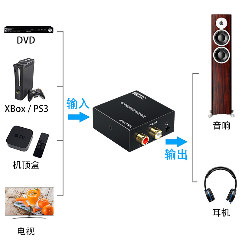 Chuangjiaji digital coaxial optical fiber audio converter TV connection audio SPDIF turn 3 5 double lotus audio line