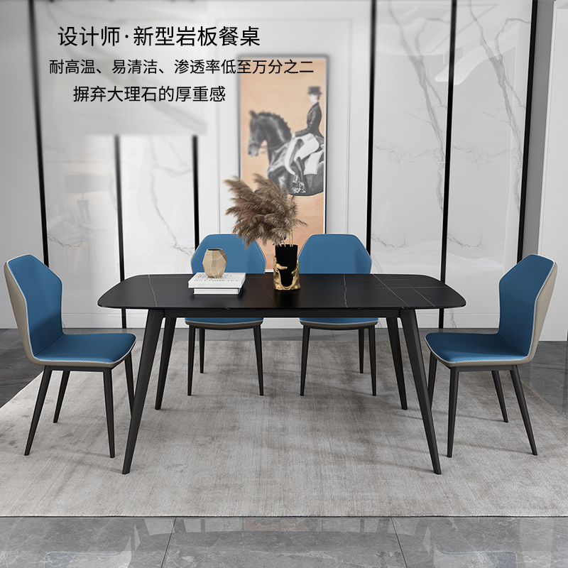 Italian Extreme Minimalist Rockboard Table Home small family Type modern minimalist Rectangular Light Extravagant Economical Dining Table And Chairs Combination-Taobao