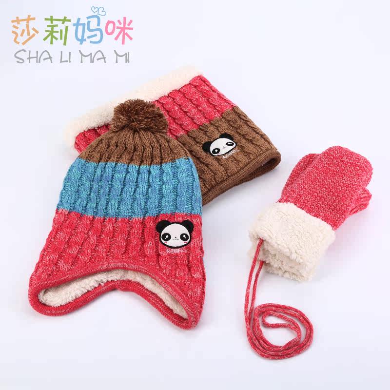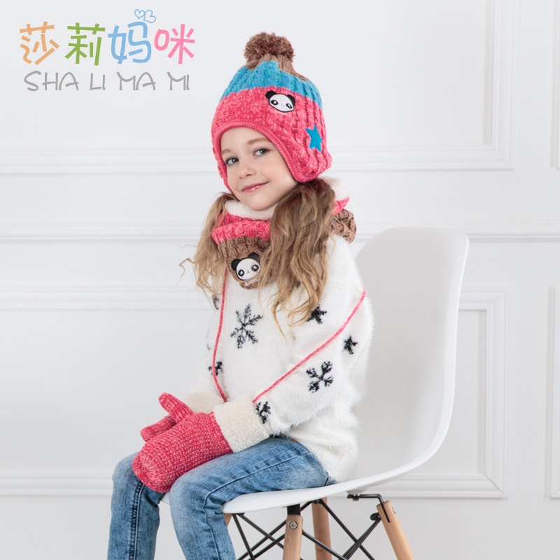 Shari Moms Children Hats Scarves Gloves Three Suits Baby Autumn Winter Fever Clothing Pants Plush ears