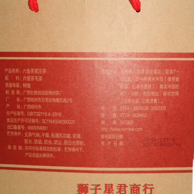 Guangxi Wuzhou Tea Factory Three Crane Six Fort Tea 2015 aged 55031 Tightly Packed Case 1 8 kg Tgrade Black Tea
