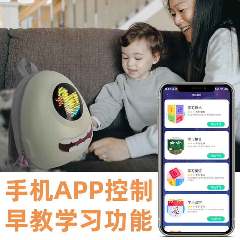 LOY children's backpack puzzle graffiti learning LED backpack cartoon cute 3-year-old kindergarten schoolbag boys and girls