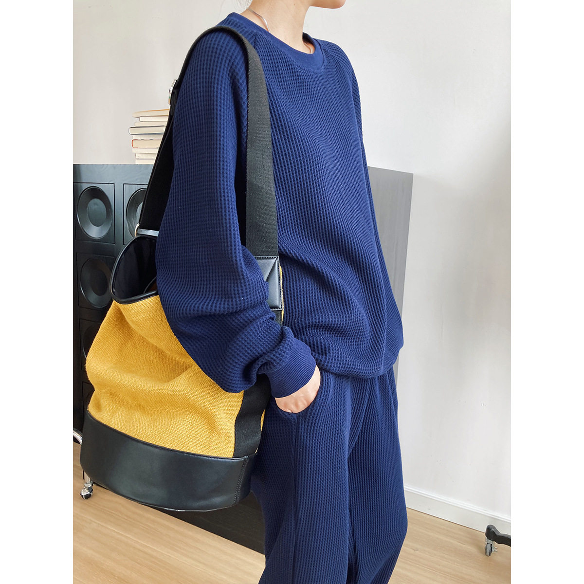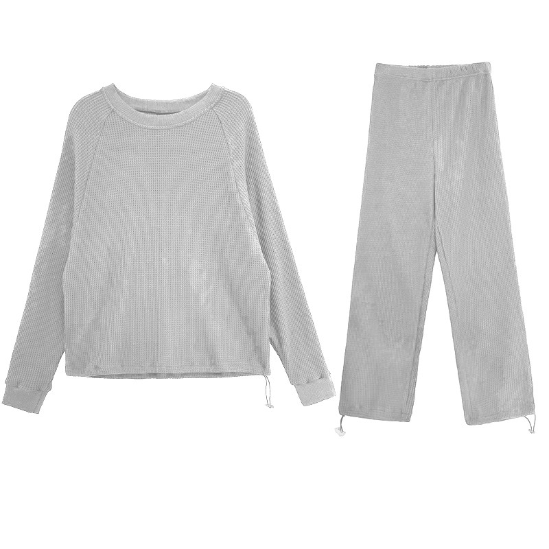 Breastfeeding clothes spring and autumn fashion going out breastfeeding wear Korean version of long-sleeved waffle sweater and pants two-piece suit