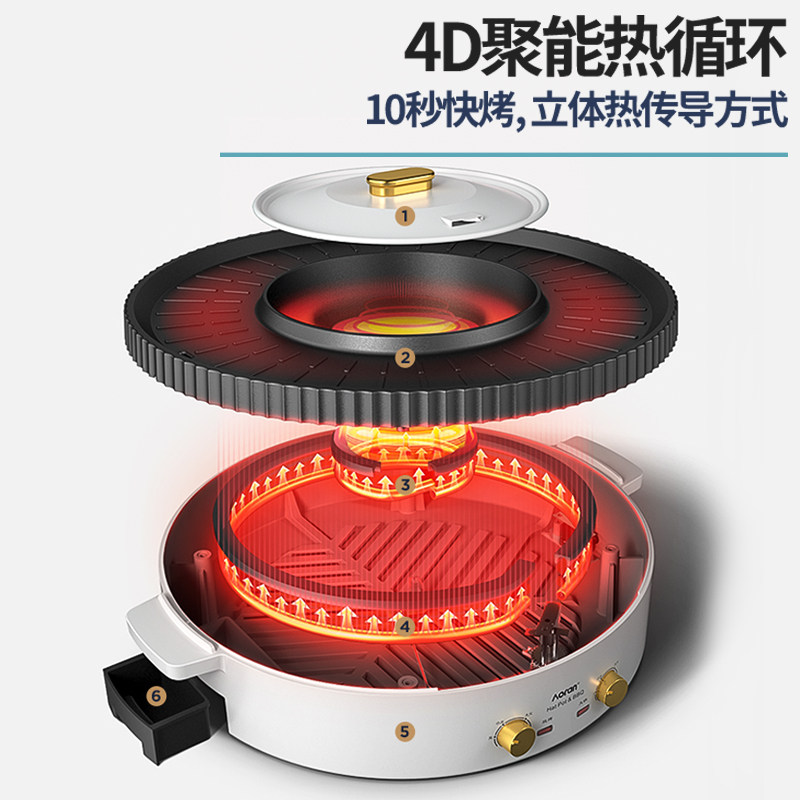 BBQ electric hot pot all-in-one pot household three-in-one roasted Korean barbecue pot multi-functional brush roasting pot dual-purpose