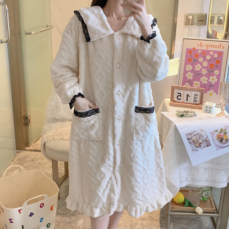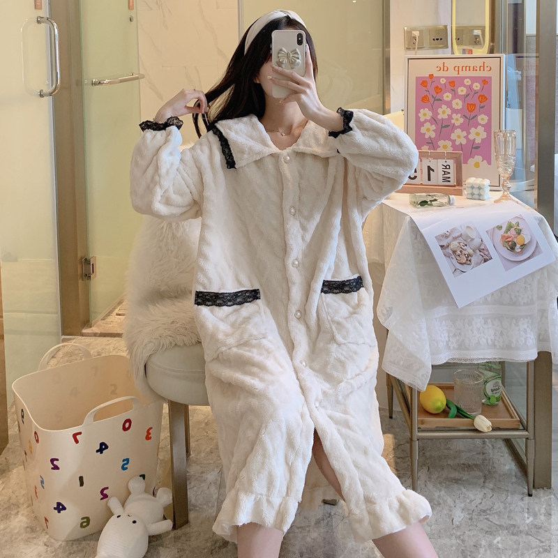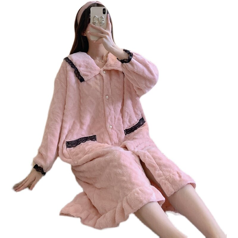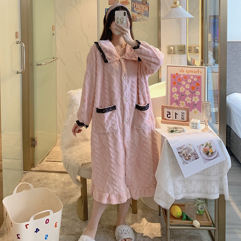 2021 Sleeping Robes Women's Autumn Winter Coral Suede Thickening Plus Suede Long Version Turtlet Outside Wearing Single Robe Pyjamas Pyjamas Sleeping Skirt Bathrobe