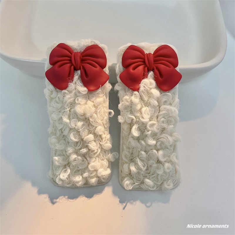 Lamb hair clip red bow on the run princess BB clip sweet and cute plush autumn and winter hair accessories hair ring female