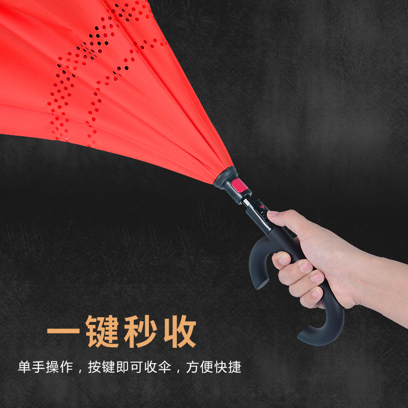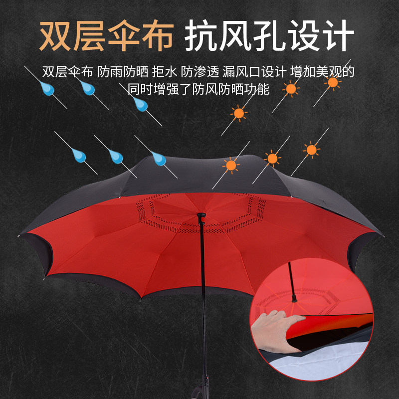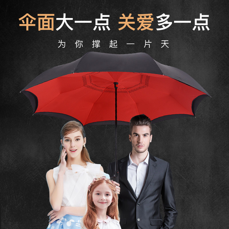 German long handle reverse umbrella large double double car automatic umbrella double anti-wind reinforcement pure color customizable logo