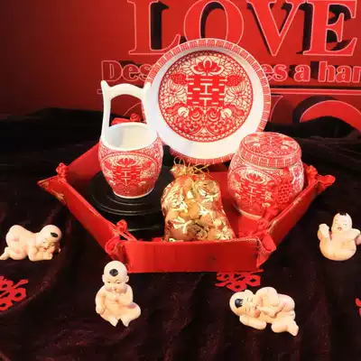 Son and Sun Bucket Wedding Supplies Big Quanxi Bucket Toilet Red Bucket Bride Dowry Three Pieces Wedding Supplies