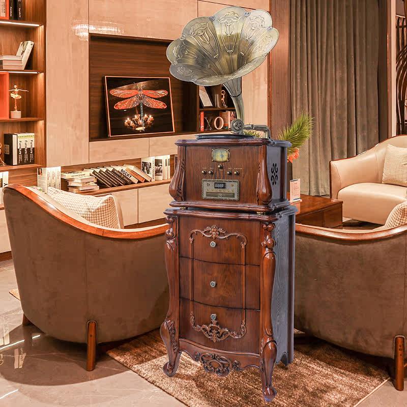 This ink gramophonic machine retro-livingroom European-style solid wood black adhesive record machine imitation ancient flow sound machine Bluetooth Remain recorder B29