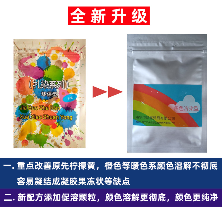 Indigo blue (monochromatic boiling dye type) Large red (color cold dye type) Rosered (Color Cold Dye Type) Indigo Blue (Colored Cold Dye Type) Cuisines (Colored Cold Dye Type) Peach Pink (Color Cold Dye Type) Orange Color (Color Cold Dye Type)