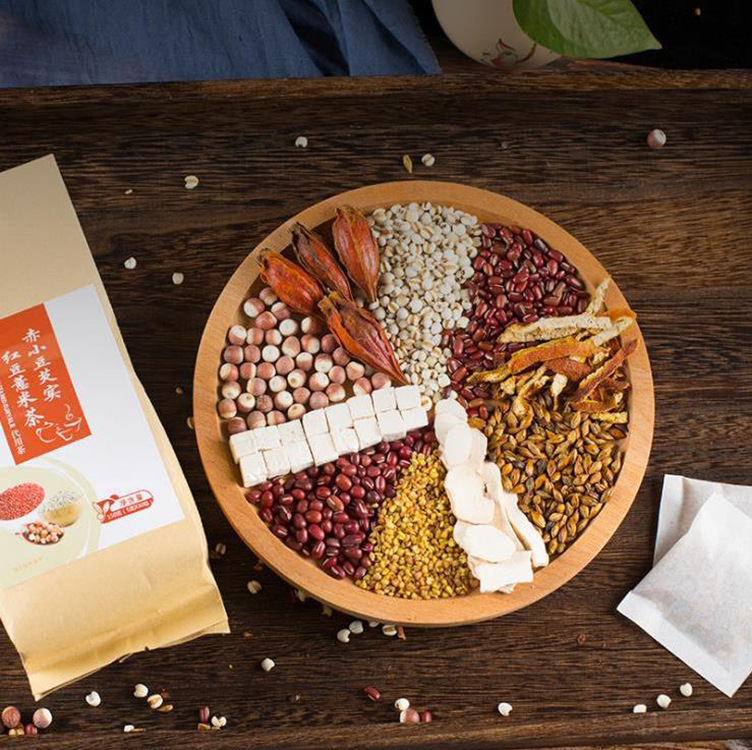Adzuki bean, red bean, coix seed, yam, gardenia, tartary buckwheat, gorge, licorice, orange peel, barley