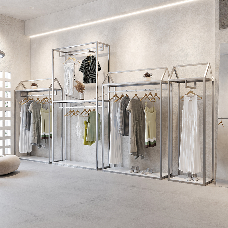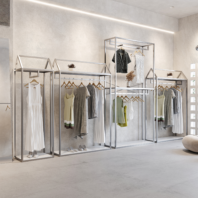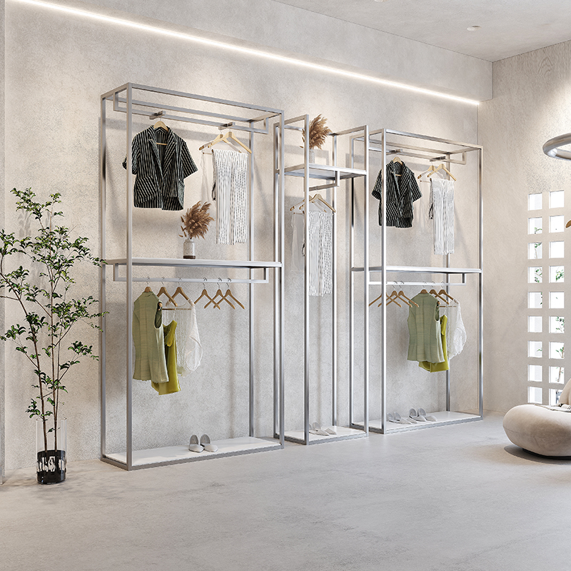Clothing Store Show Rack Clothing Shelf Men And Women's Clothing Store Shelves Display Shelf Floor Type Double Hangers Hanger