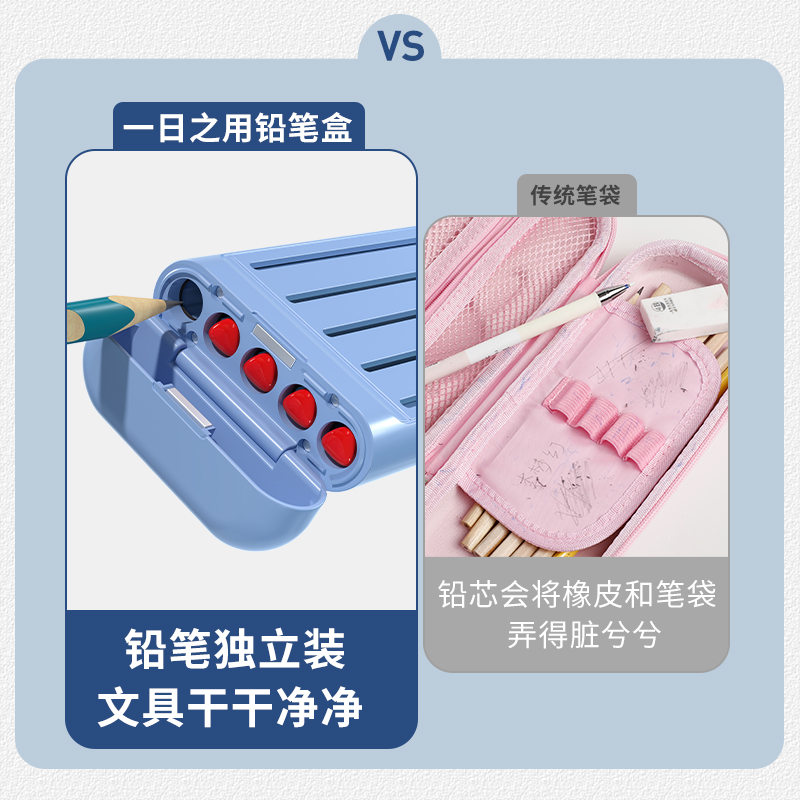 1st PENCIL CASE-ATHENS BLUE (Distribution 5 Pencil 1 Rubber 1 Ruler) Guangdong Shipping 1st USE PEN BOX-Light Faith Pink (Distribution 5 Pencil 1 block of eraser 1 straight