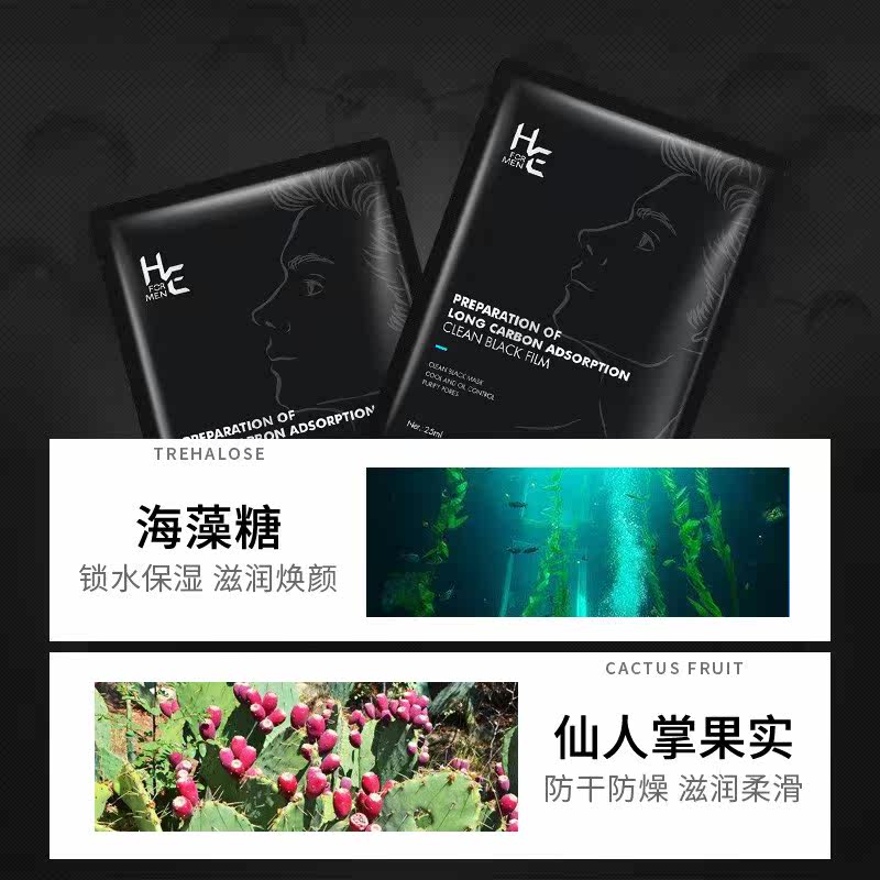 HE Hern Men's Charcoal Net Overdraft Black Mask Suction Black Deep Clean Lift Color Moisturizing Moisturizing Shrink Pores