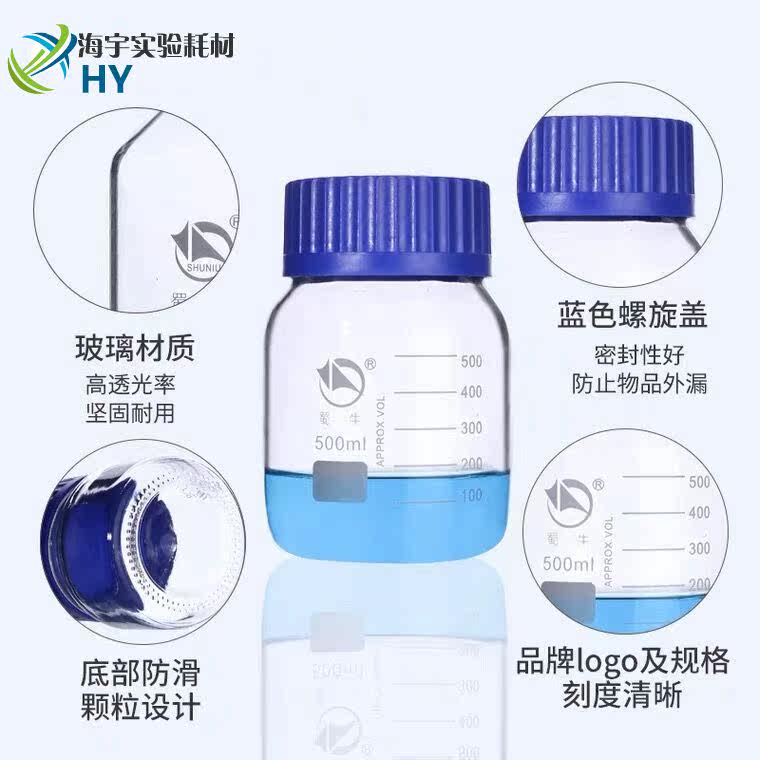 Shu Bull GL80 Wide Mouth Blue Cover Bottle Neutral Material Large Blue Cover Bottle Blue Lid Reagent Bottle 250500 1000ml