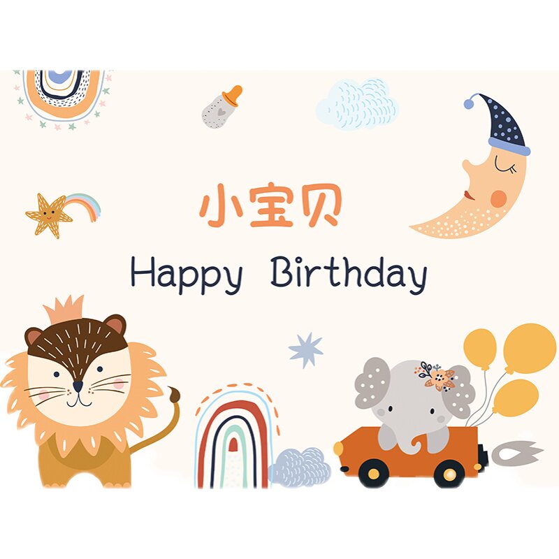 Baby's 1st birthday background is covered with full moon hundred-year-old banquet poster wall covering cartoon animal party scene decoration