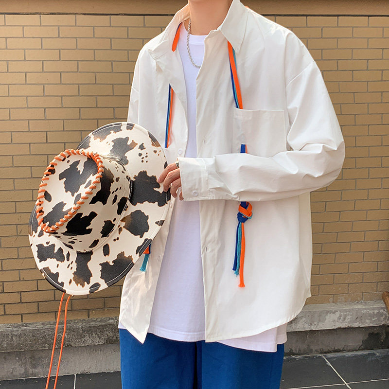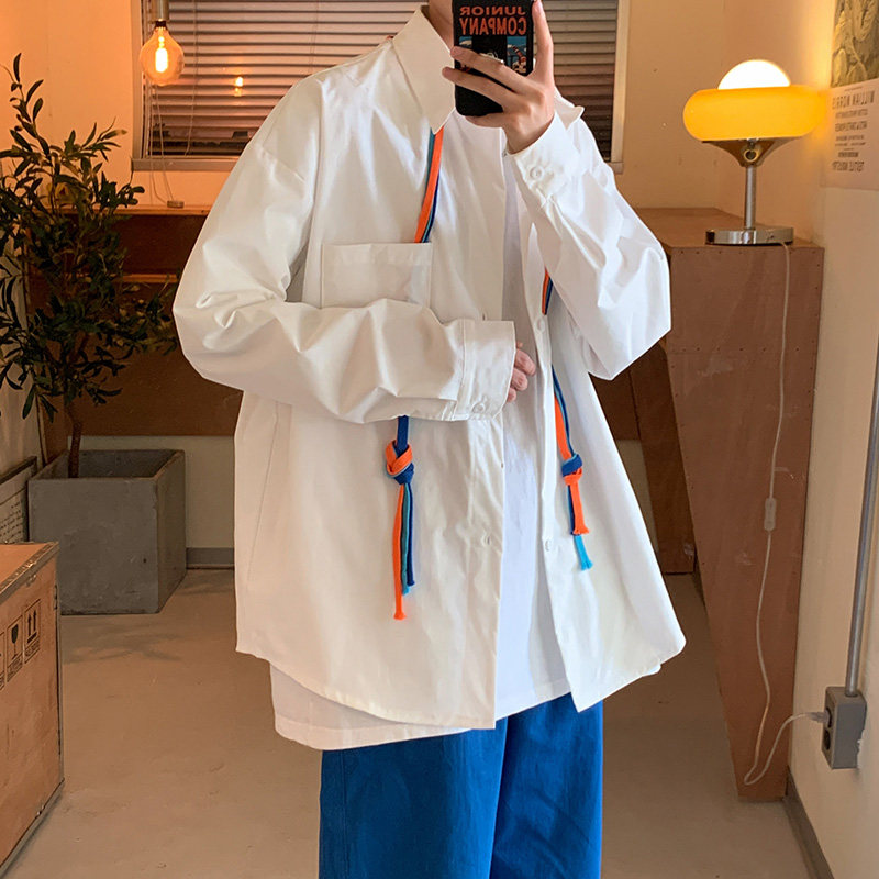 Port Wind Side Webbing Long Sleeves Shirt Men's Autumn Diners Couple Loose Clothes Trend Tide Trump Student Coats