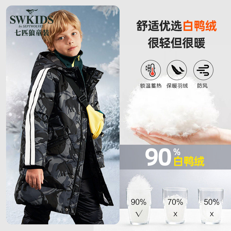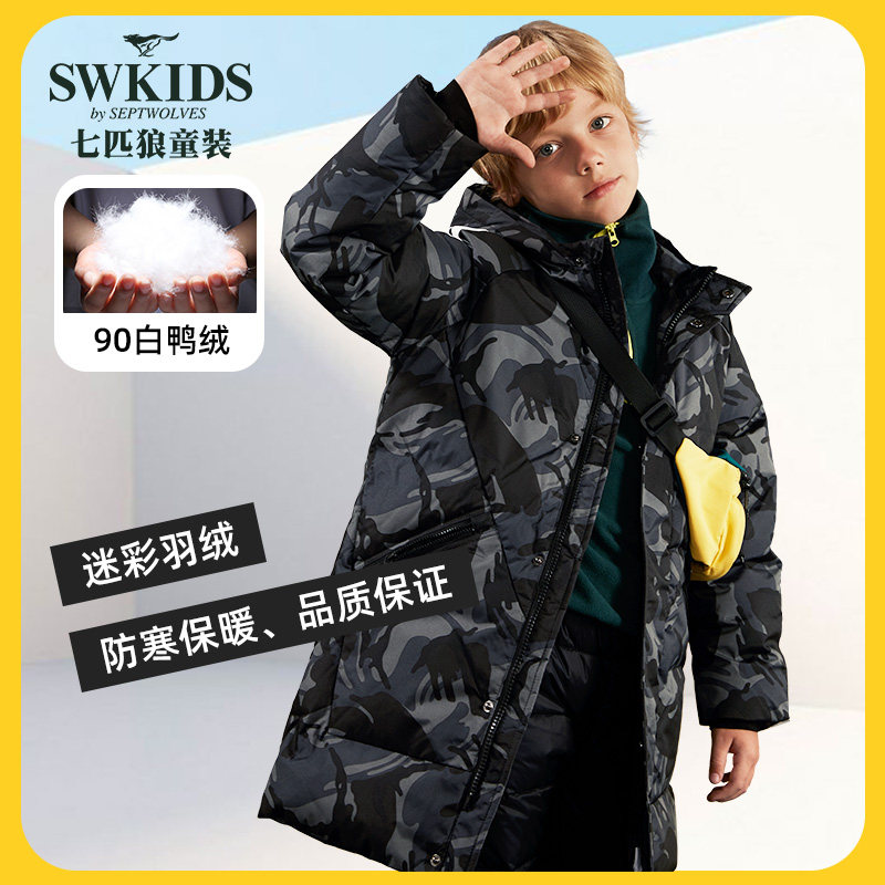 Seven wolves children clothing children's down clothes 2020 autumn and winter medium long version with cap down jacket