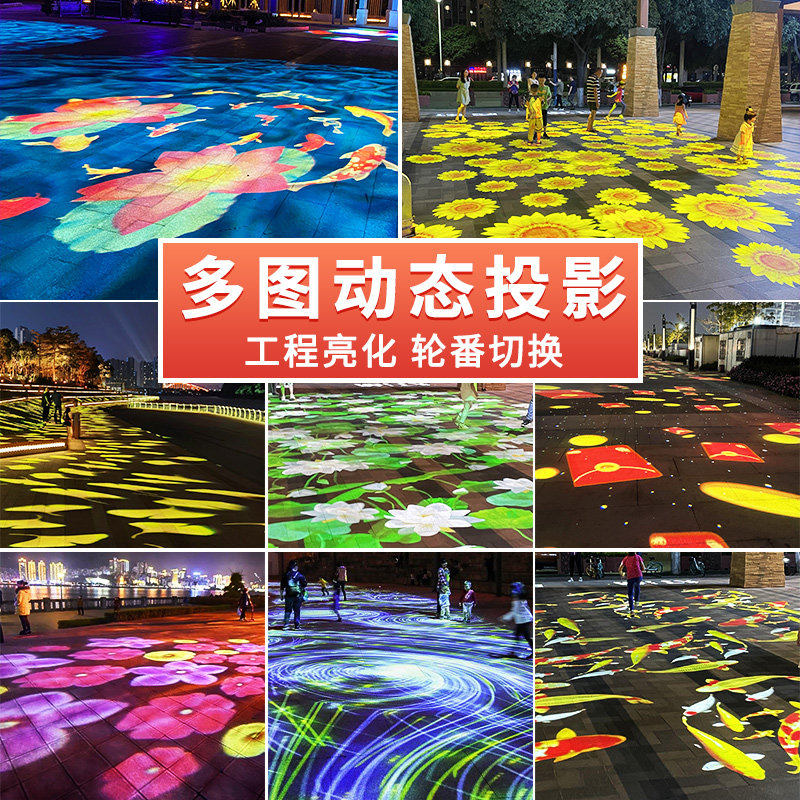 Four Photos Rotation Outdoor Net Red Brightening Park Hotel Ground Spotlight High Power Logo Advertising Light Dynamic Fish Pattern Atmosphere DMX512 Synchronous Linkage Creative Projection Light