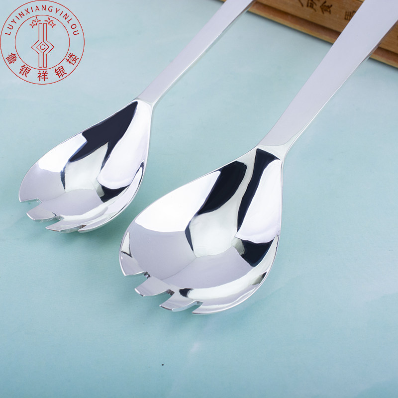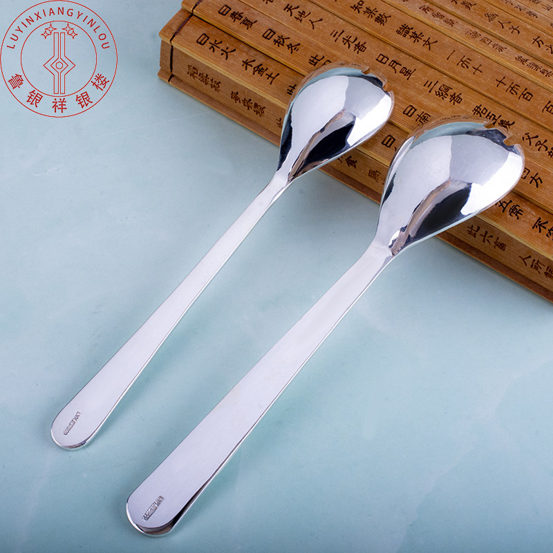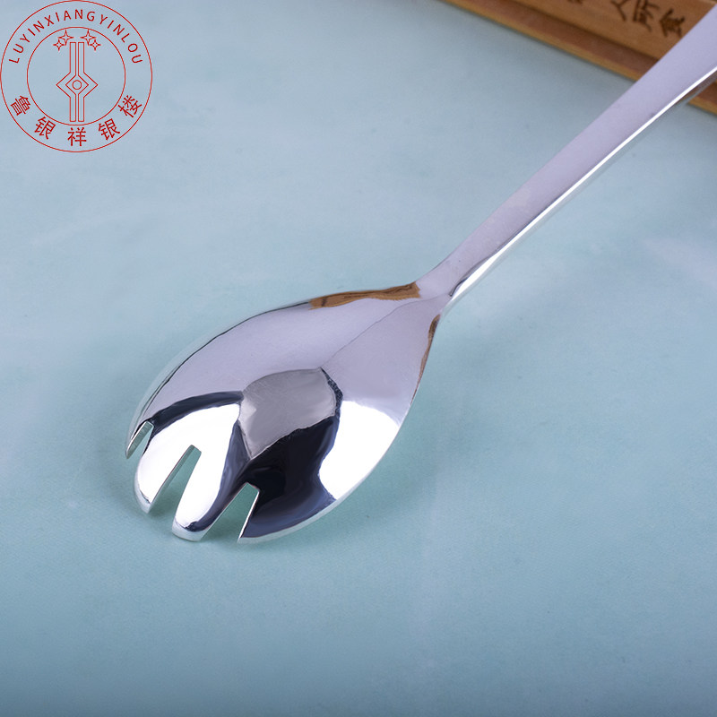 Lu Yinxiang Silver Building Foot Silver 999 Silver Spoon Glossy KFC Long Handle Sterling Silver Tableware Fork Spoon One Adult Children