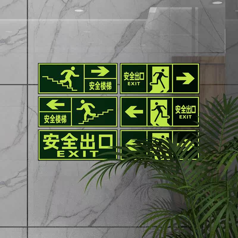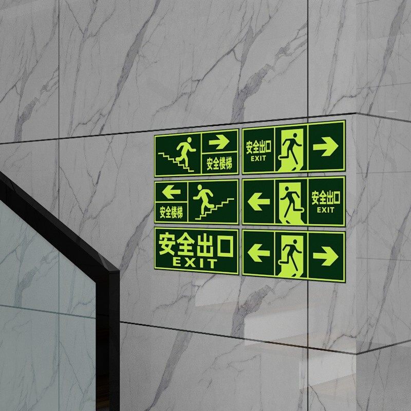 Safety exit signs fire sign signs escape channel floor stickers warning luminous wall stickers careful steps