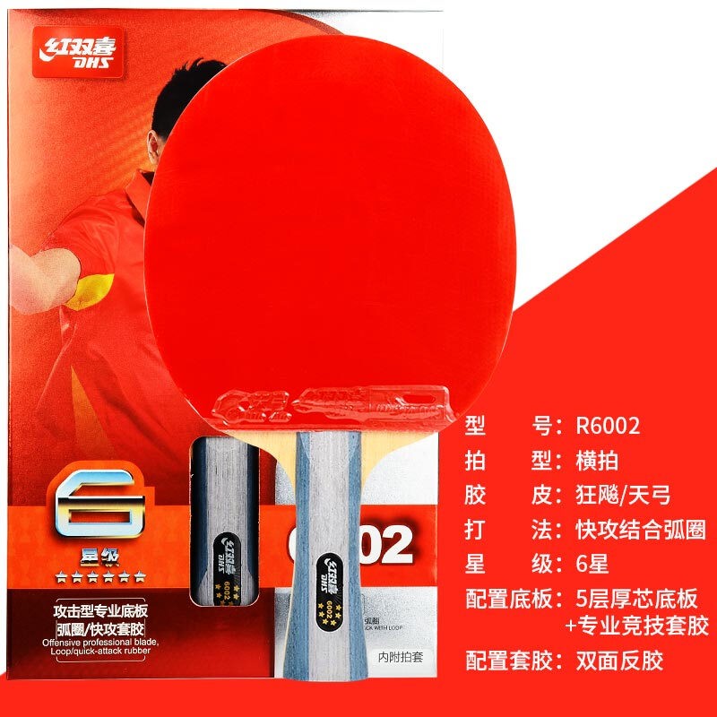 Double Happiness 6 six-star table tennis racket horizontal shot straight shot double-sided anti-glue professional set of glue fast attack combined with finished shot