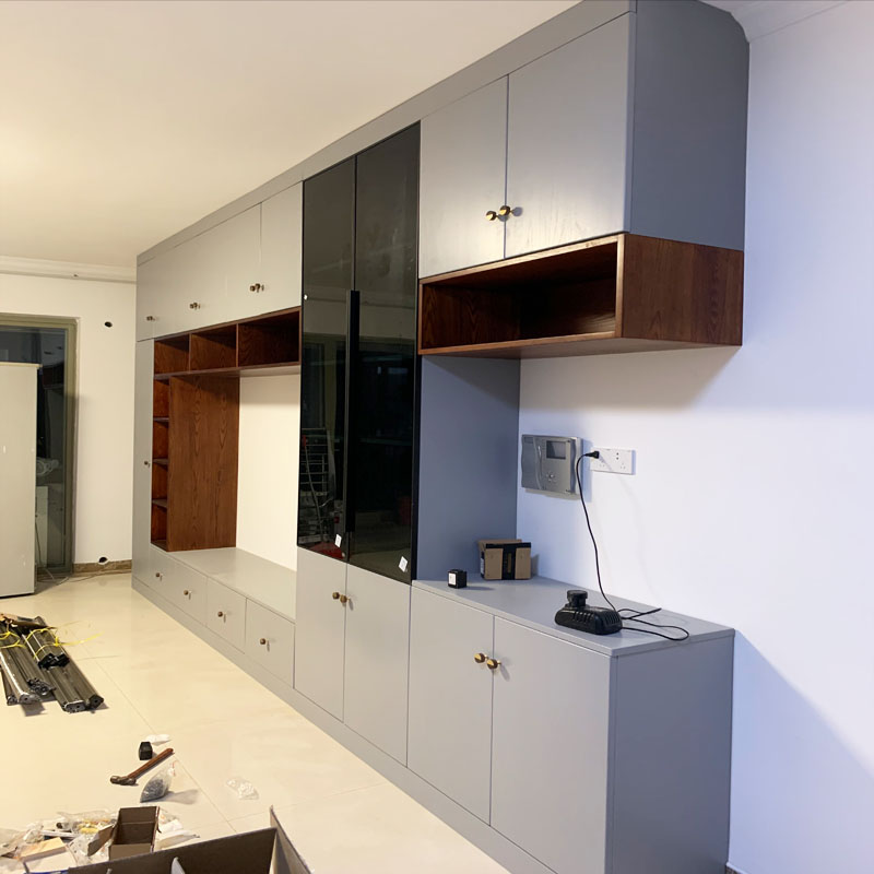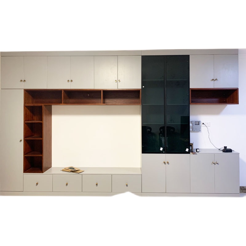 Guangzhou full log solid wood whole house custom glass door pine TV cabinet living room storage cabinet factory direct environmental protection