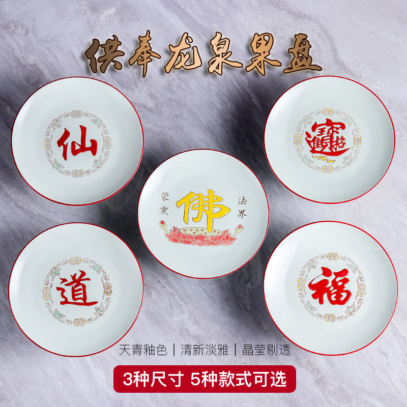 For the plate home offering tribute offering fruit plate Buddha front fruit plate for Buddha offering Longquan tribute plate God of Wealth offering plate