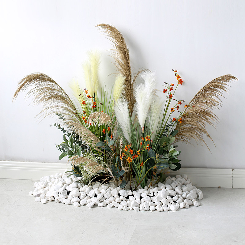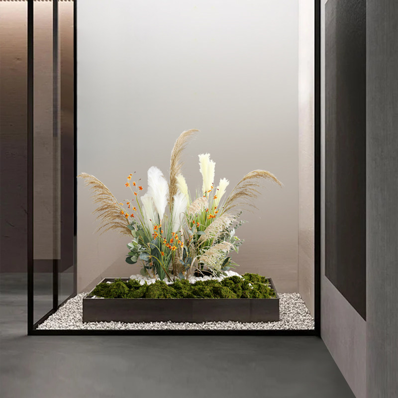 Large-scale plant landscaping indoor soft decoration layout green plant reed landscape model room showcase staircase corner fake flowers and plants