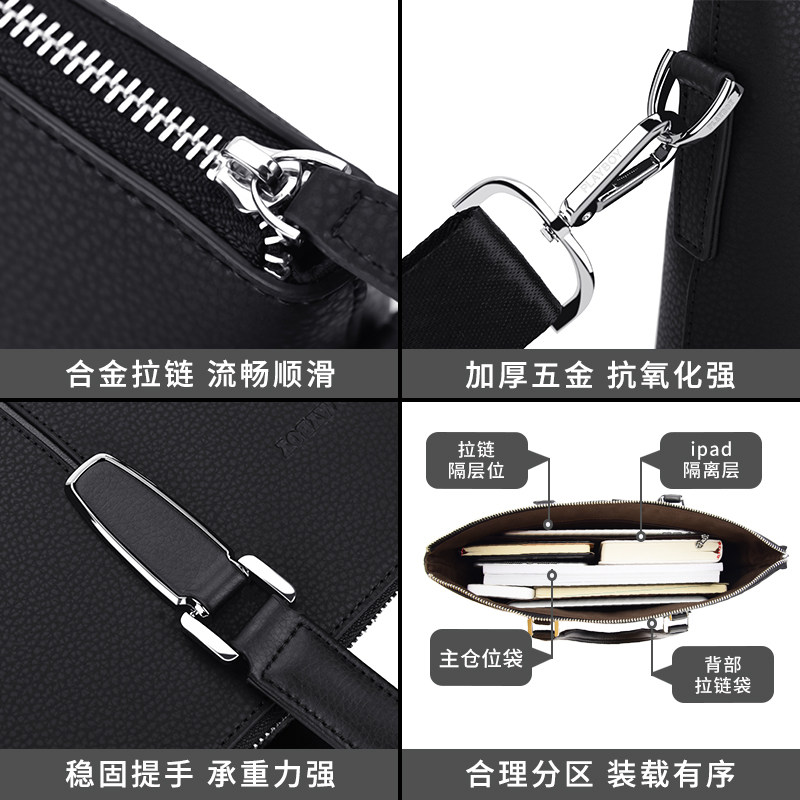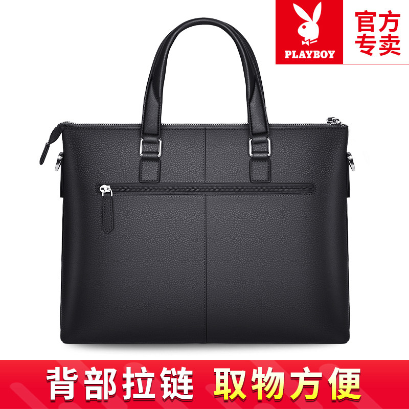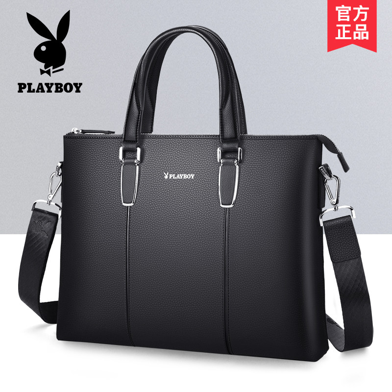 Playboy men's large bag leather handbag business briefcase horizontal casual large-capacity one-shoulder messenger bag