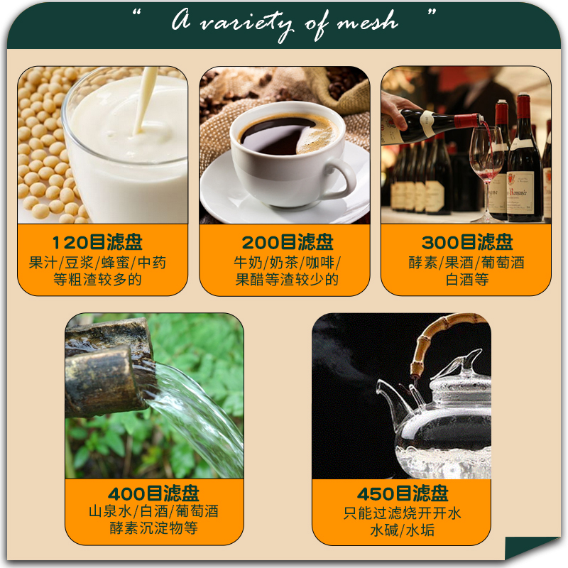 13cm filter disc 120 mesh (more coarse slag such as traditional Chinese medicine soy milk) 13cm filter disc 200 mesh (less coarse slag such as coffee fruit vinegar) 13cm filter disc 300