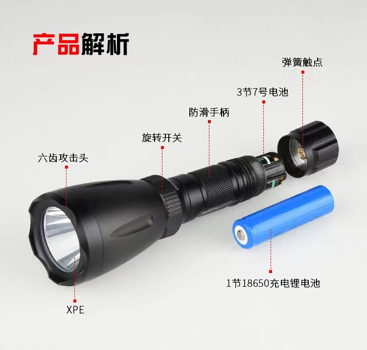 18650 Flashlight diving night dive to catch the sea distance spotlight underwater professional waterproof lighting strong light outdoor camping