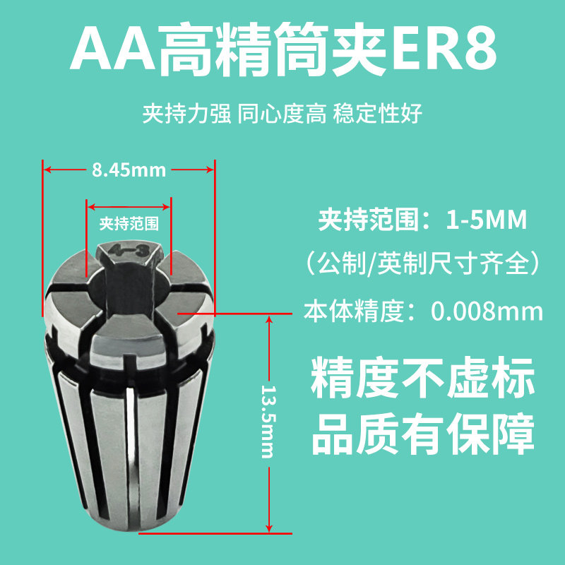 AA high-precision barrel clamp ER8 chuck precision 0 008mm clamping 1 2 3 4 5 elastic cable Tsui engraving machine CNC clamp