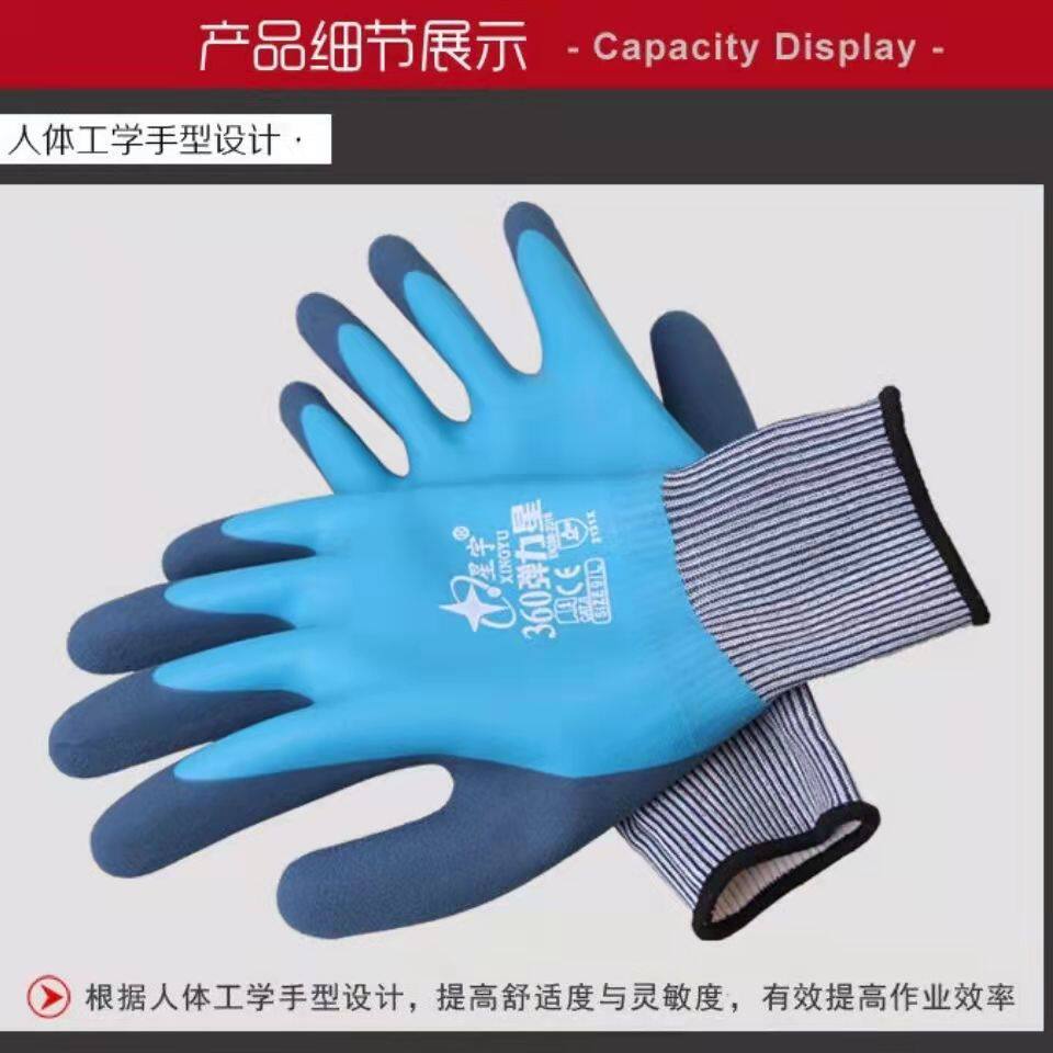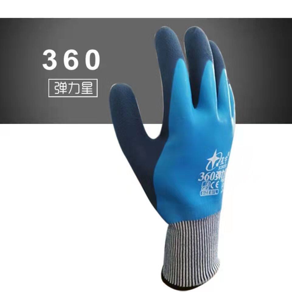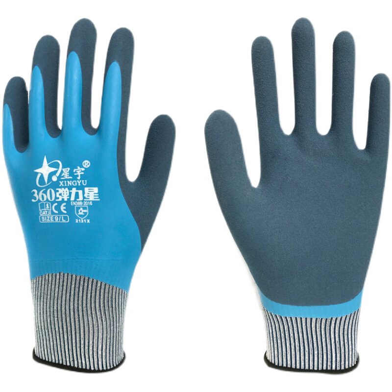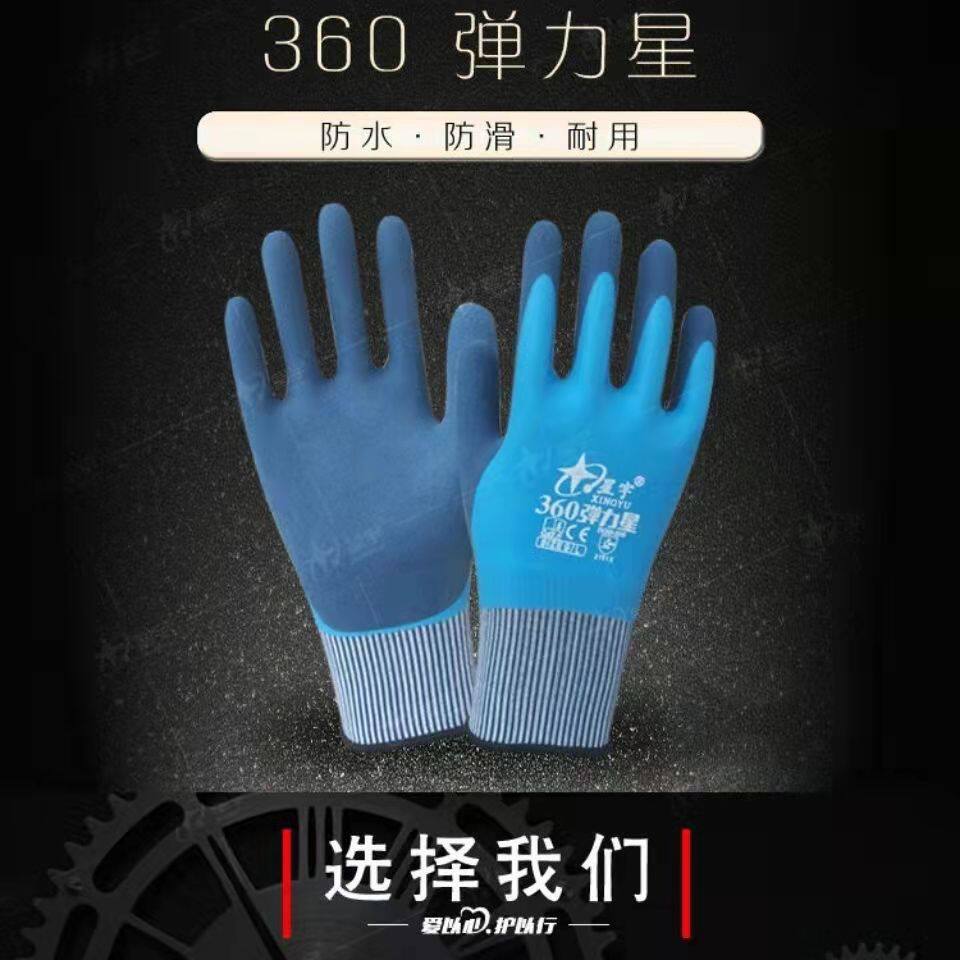 Xingyu labor insurance gloves 360 elastic star full dip wear-resistant non-slip waterproof comfortable sensitive rubber gloves