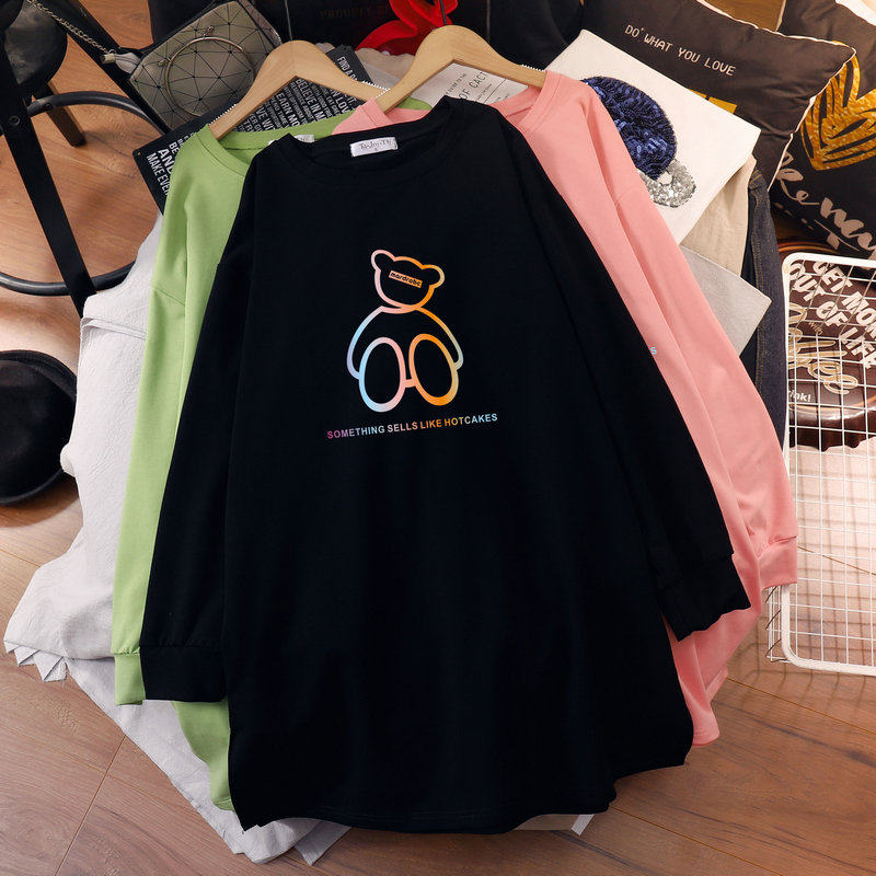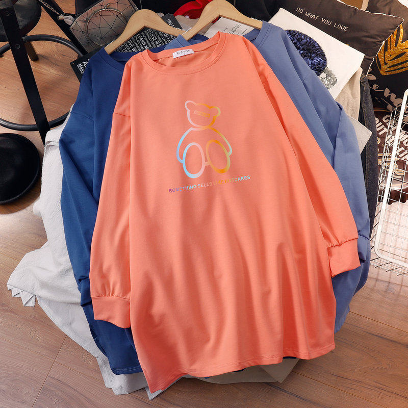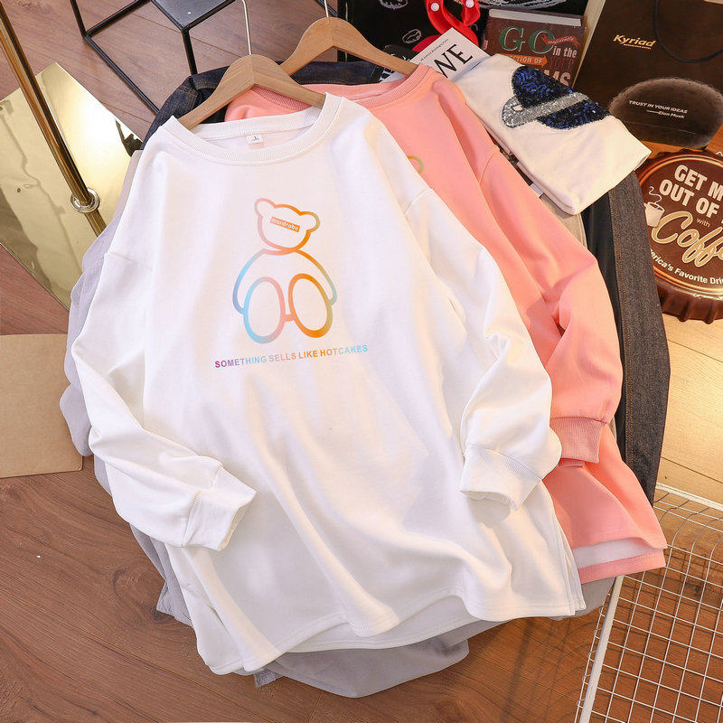 Pregnant women's autumn clothing and clothing plus suede loose large size for long version 2022 spring autumn new Korean version small bear long sleeve blouses woman