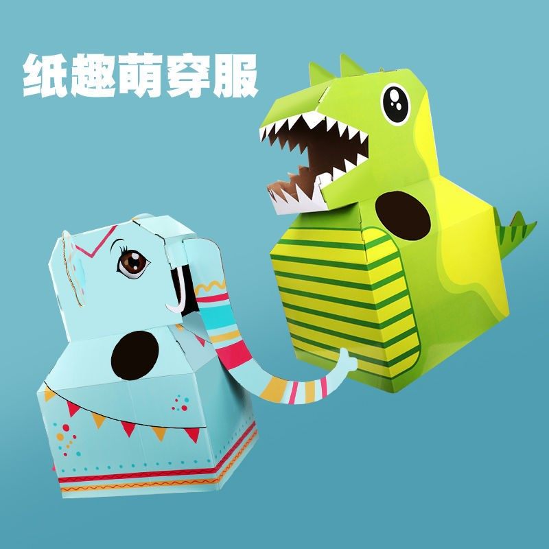 Children's Dinosaur Toy Wearable Cardboard handmade paper Pidinosaur shell Hard paper version DIY assembly model