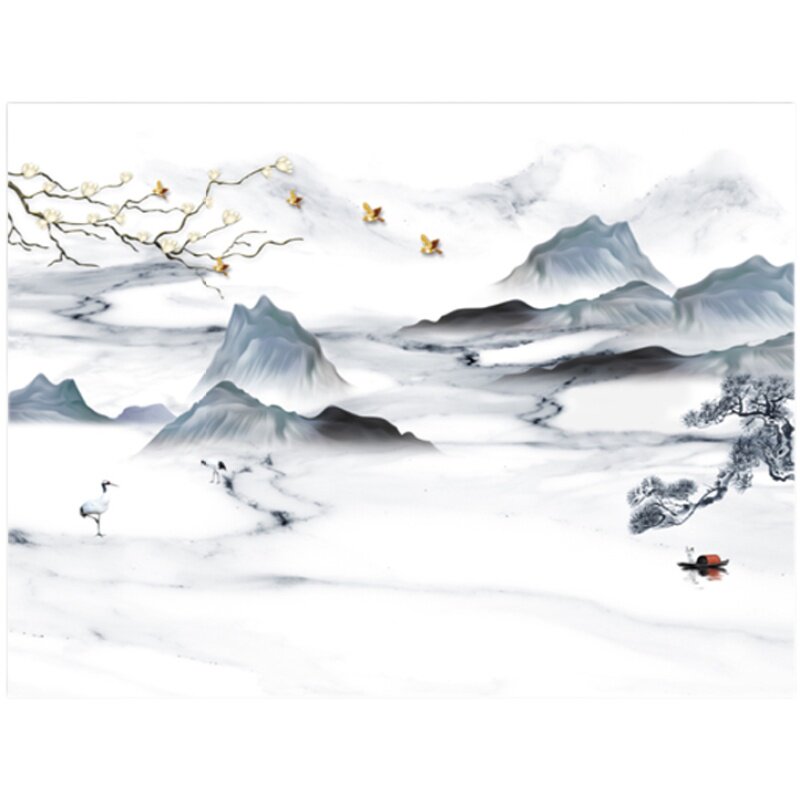 Tile Large Board Film & Film Wall Landscape Scenery New Chinese Background Wall Living Room Marble Chinese Custom Engraving UV Face