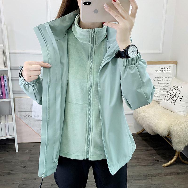 Hidden walker's submachine clothing men's three-in-one detachable windproof and waterproof plus suede thickening tooling anti-cold spring and autumn jacket woman