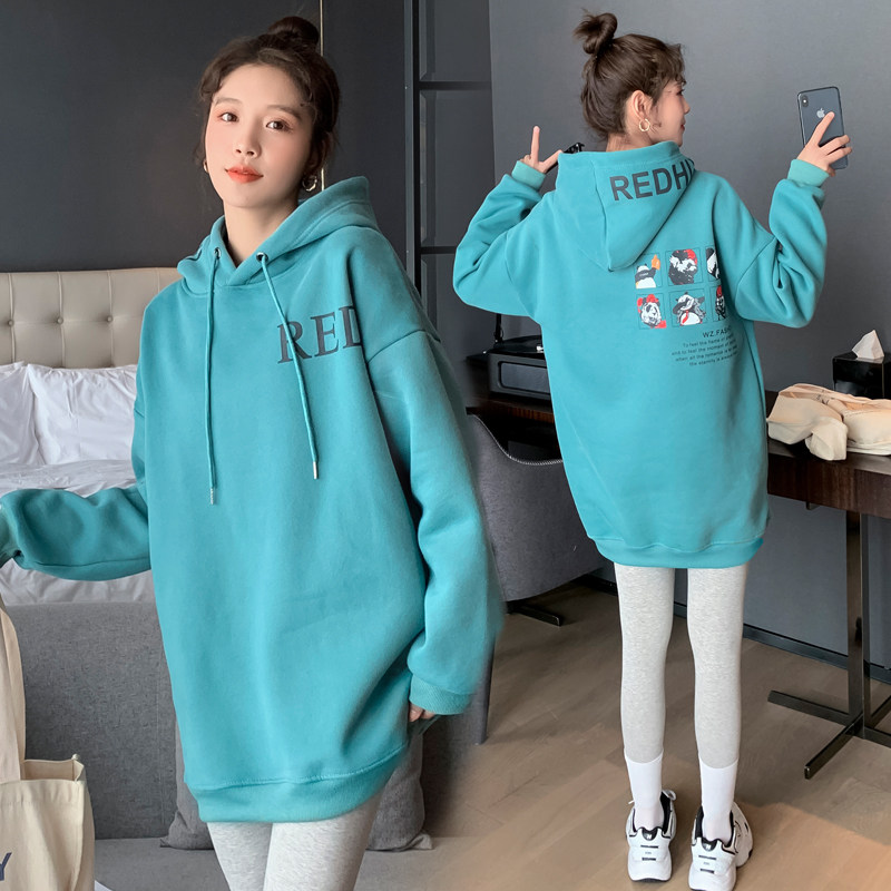 Pregnancy Woman Dress Autumn Clothing Suit Fashion Large Size Code Plus Suede Jacket Head Casual Blouse Woman Mid dress Large size Lioncello with cap jacket