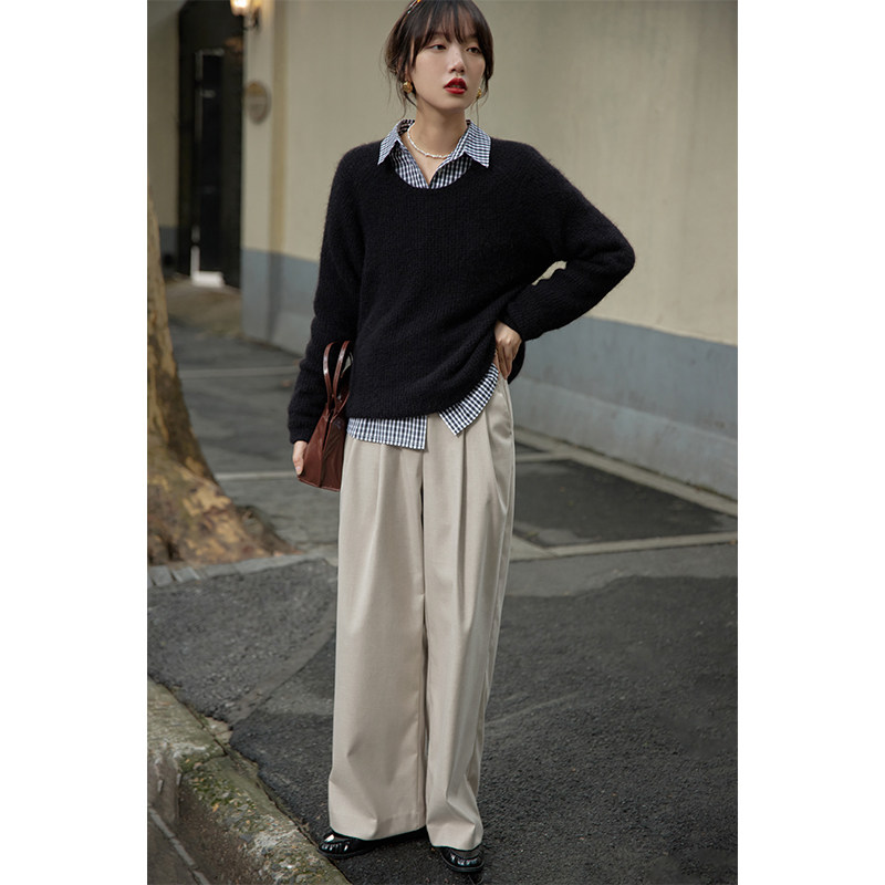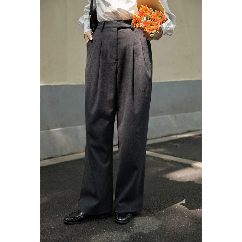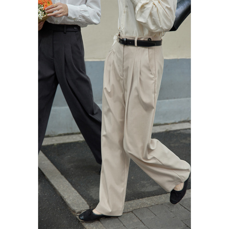 Beautiful emperor retro straight drum high waist 100 hitch-legged pants female display high display slim fit pants early spring new pants