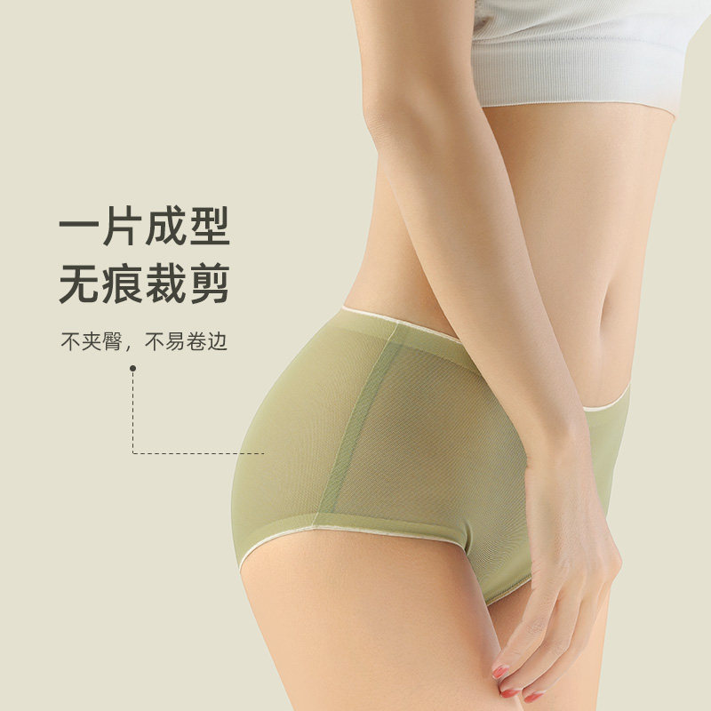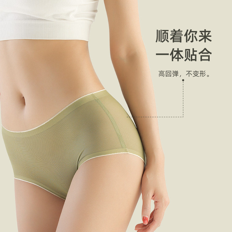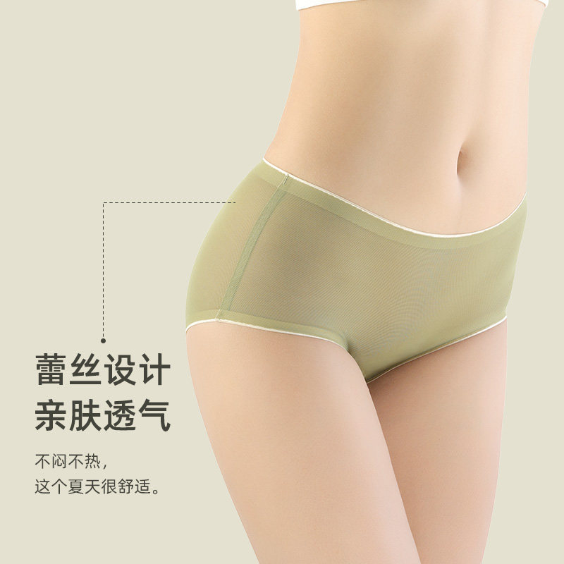 Lady Briefs Ice Silk Unscratched Mid Waist Pure Cotton Crotch Antibacterial One-Piece Triangular Shorts Teenage Girls Summer Girls Thin