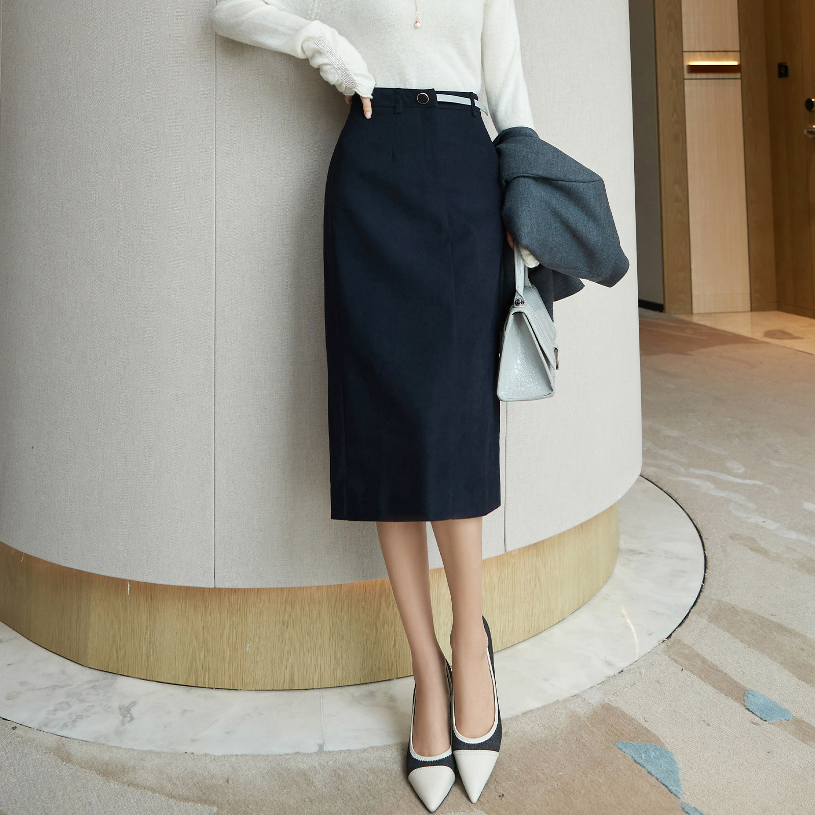 At first glance unforgettable gas field full 2022 springtime new high-end light core suede professional commuter half-body dress
