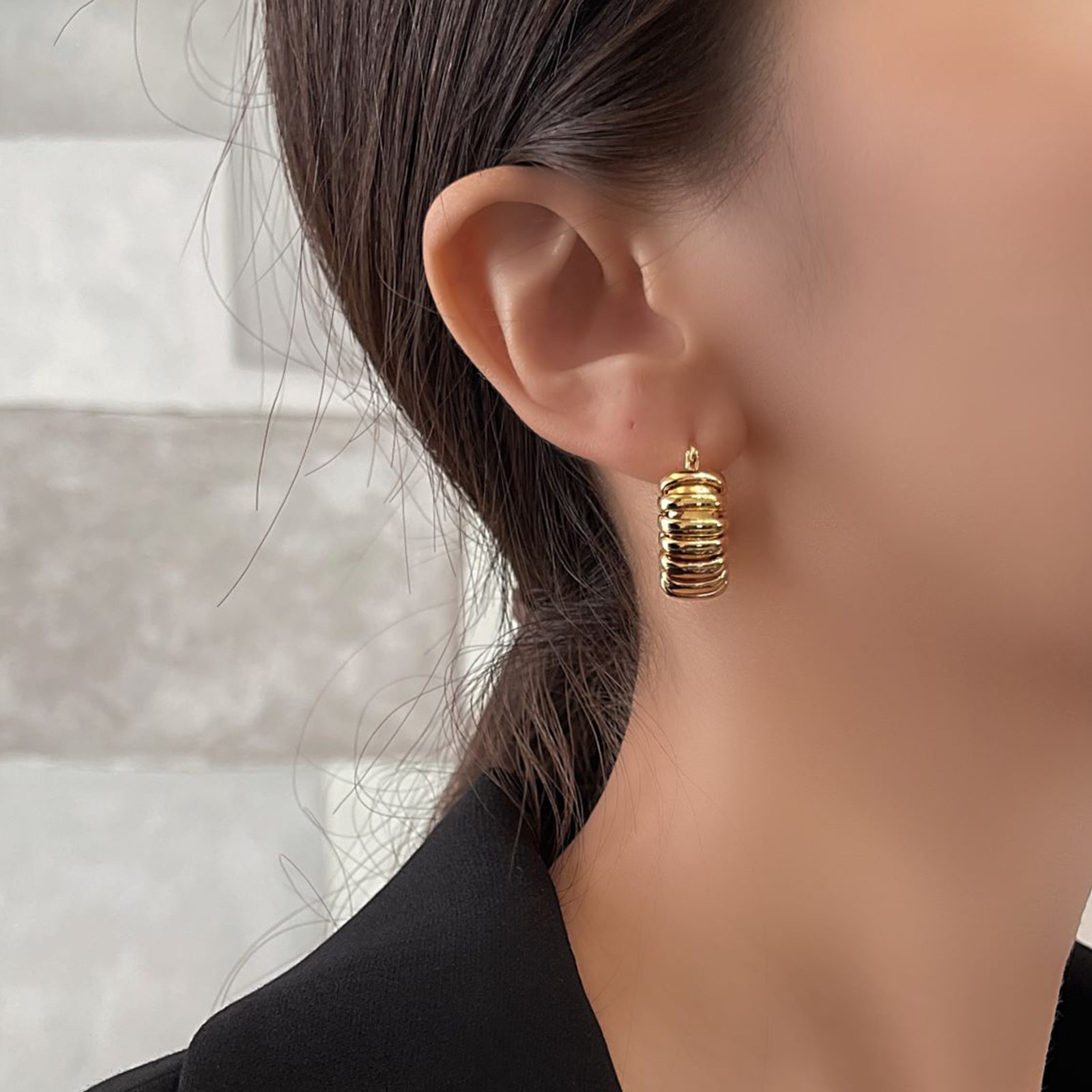 INNOSENSE European and American retro tire embossed earrings personality simple metal bread pattern C ring earrings earrings women